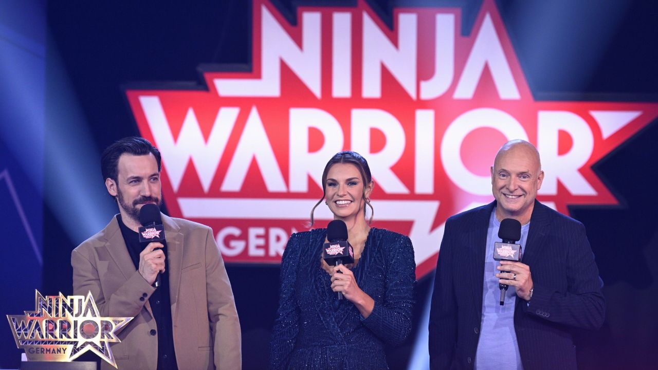 Das Modertions-Trio Jan Köppern Laura. 18112022 um 2015 Uhr Finale 2 Ninja Warrior Germany 2022. 50 Athletinnen 2.